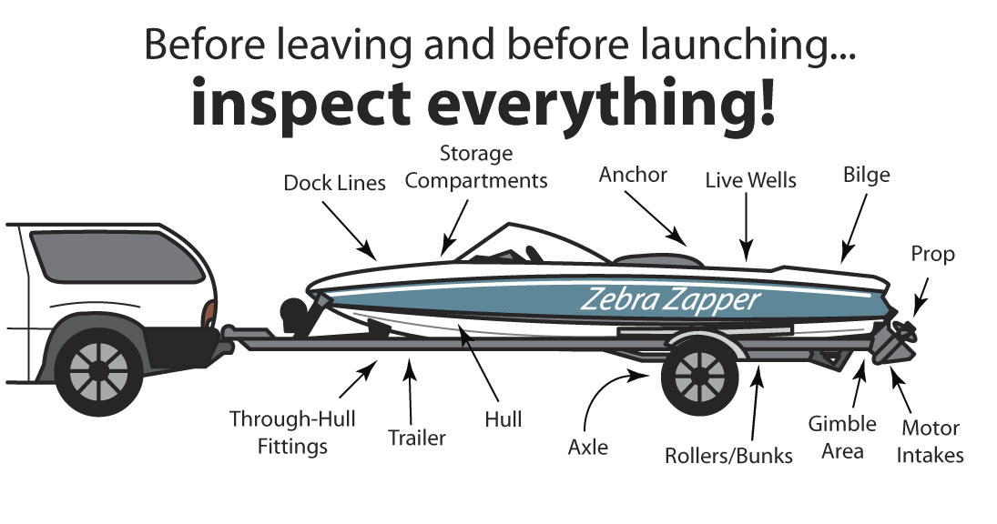 - Clean off any mud, plants (even small fragments), and animals from boats, trailers and equipment.