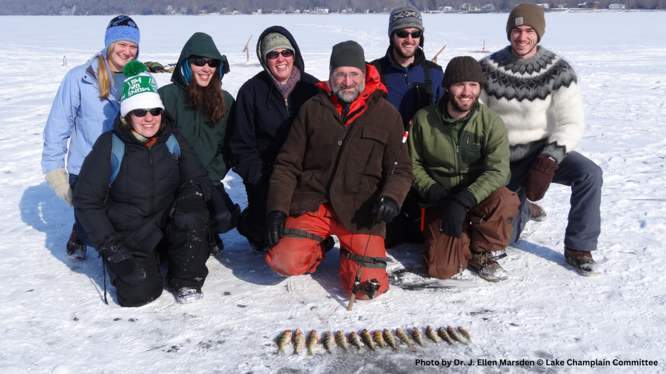 Researchers at UVM are using new technology to investigate Lake Champlain fish activity in winter. (Photo by Dr. J. Ellen Marsden).