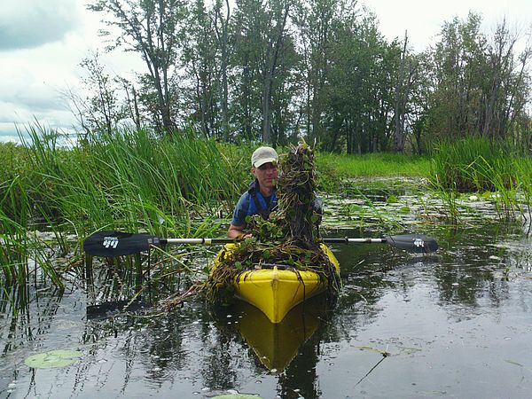 For most of the last six years LCC has been conducting surveys for aquatic invasive plants and initiating control efforts where possible. We have worked in conjunction with Arrowwood Environmental to map the distribution of European frogbit and water chestnut around the northern portion of Lake Champlain and conduct handpulling removal efforts where applicable. While water chestnut is still fairly rare in these areas, sadly we have found frogbit to be prevalent. This year we have shifted our focus upstream from the lake to find out how far inland frogbit has spread. So far we have found pockets in the wetlands at the mouth of the Winooski River and widespread populations in the LaPlatte River marshes. The project provides important information to help understand the distribution, extent and biology of aquatic invasive species in the Champlain Basin. By continuing our inventory and control efforts, we are able to contribute to the maintenance of a healthy Lake Champlain ecosystem. The mapping and control project is funded with a grant from the Lake Champlain Basin Program.