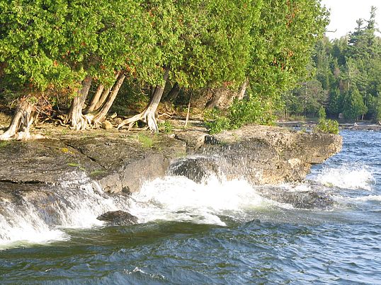 Wind and Waves – Whitecaps are a clear sign of dangerous conditions on the lake. Waves can overturn your boat (especially canoes), make it difficult to turn, prevent you from holding course, and slow or stop your progress. Wave conditions can be especially chaotic and dangerous in shallows and along shoals, cliffs and rock bluffs. Waves in open water can be much higher than those in protected coves or behind islands.