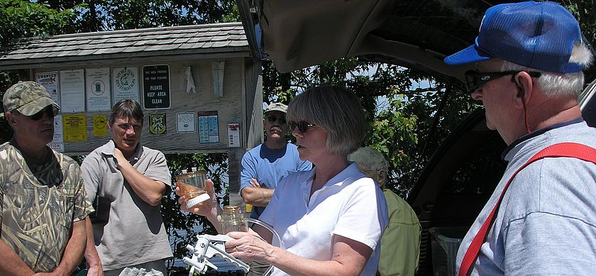 Each summer LCC trains and oversees citizen monitors to report on cyanobacteria conditions in their area. This program provides critical data on where and when blooms are happening and helps inform public health officials as to whether the water is safe for swimming. In 2012 our volunteers began submitting observations of conditions rather than collecting water samples. This has allowed us to expand the program over a broader swathe of the lake without increasing costs, and it avoids volunteer contact with the cyanobacteria blooms themselves.