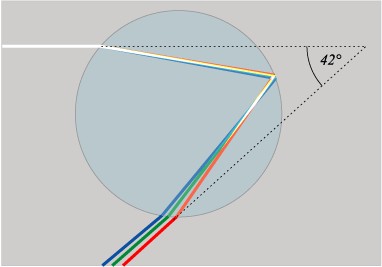 In order to see the different colors of the rainbow, light must reflect off different water droplets. Those slightly higher in the atmosphere reflect reds, while the lowest droplets reflect blues. MORE
