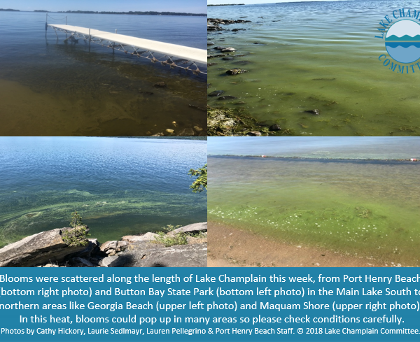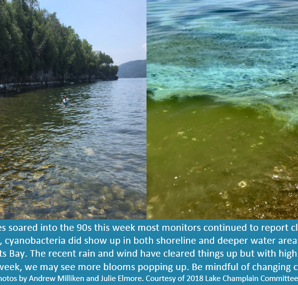 Lake Champlain Committee (LCC) monitors were busy assessing conditions throughout the watershed during this hot, dry week. We received 139 reports from Lake Champlain and inland lake sites. Hot, still weather is ideal for cyanobacteria so please be…