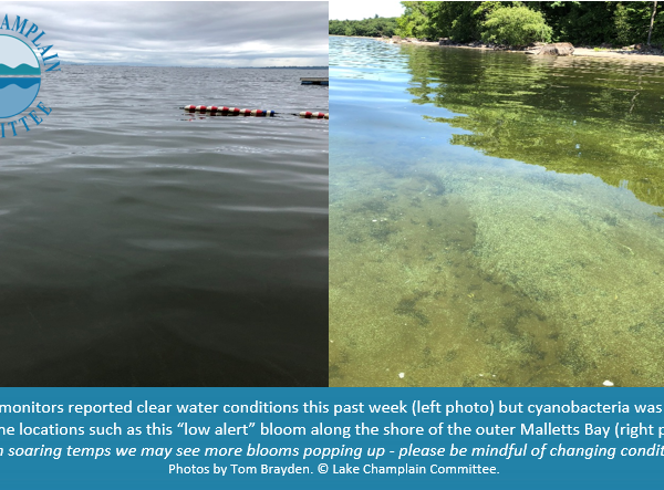 What a hot week of record-breaking temperatures! Lake Champlain Committee (LCC) monitors filed 140 reports for Lake Champlain and inland lakes. Most observed clear water, great for cooling off in during the heat wave. However, there were some…