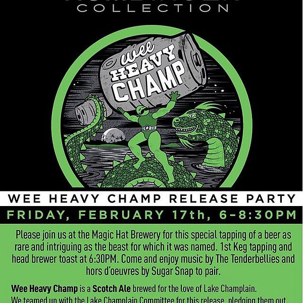 Join us at Magic Hat Brewery on February 17 for a special tapping of Wee Heavy Champ -- a beer brewed for Lake Champlain!