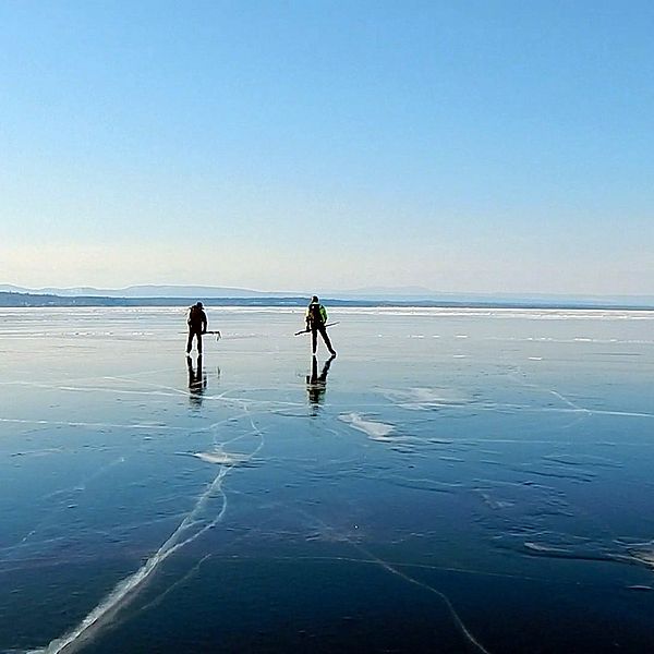 While skating along the flat clear ice of Mallets Bay four or five years ago, Jamie Leopold noticed a geyser of water shooting straight up into the air – 30 to 50 feet high. He may have witnessed a particularly large ice volcano.