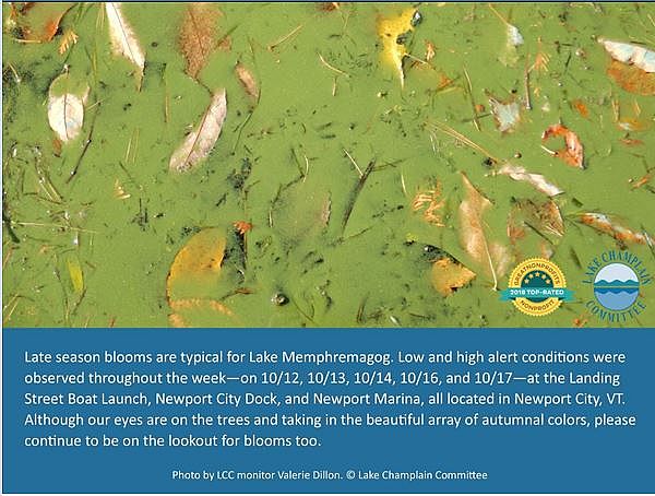 We had some great weather for leaf peeping this week but unfortunately, those moderate temperatures and sunny, calm days also helped cyanobacteria blooms flourish. High alert or mixed conditions were witnessed in Lake Champlain’s St. Albans Bay, the…