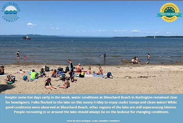 Over 216 reports were filed this week from Lake Champlain and inland waterways. Blooms were observed in all regions of Lake Champlain, except Malletts Bay and South Lake; Lake Carmi also had reports of cyanobacteria. Sun and heat are in the forecast…