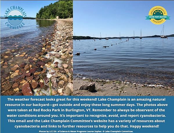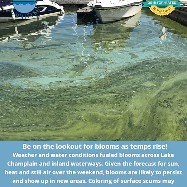 Alert level conditions were reported from several Lake Champlain locations and inland lakes this week including Lake Champlain’s inland sea, St. Albans and Missisquoi Bays and at Indian Brook Reservoir, Lake Carmi and Shelburne Pond. Scattered storms…