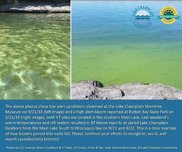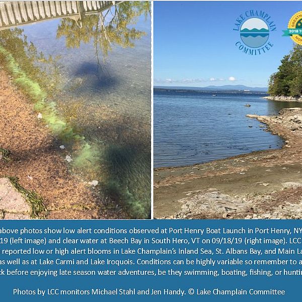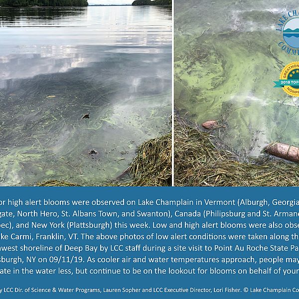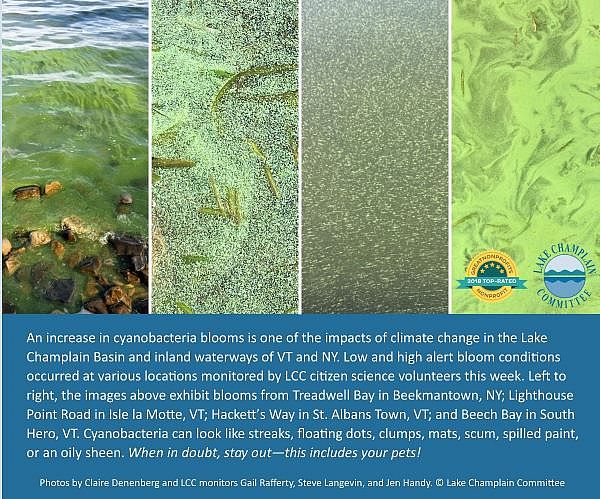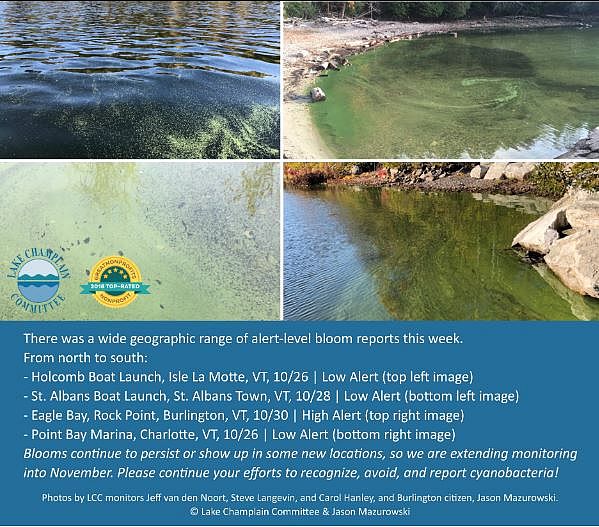 Lake Champlain Committee monitors filed over 196 reports this week for Lake Champlain and inland waterways. While there were plenty of reports of clear water, blooms proliferated in parts of Missisquoi Bay, St. Albans Bay, the Inland Sea, Main Lake…