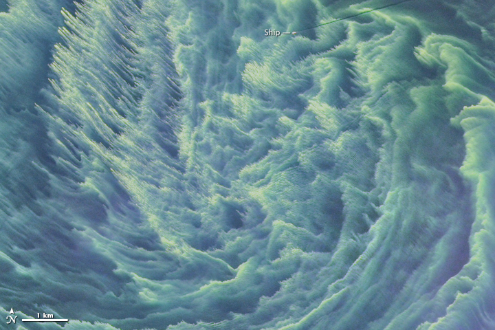 Satellite photos of a massive blooms in the Baltic Sea look like an abstract painting.