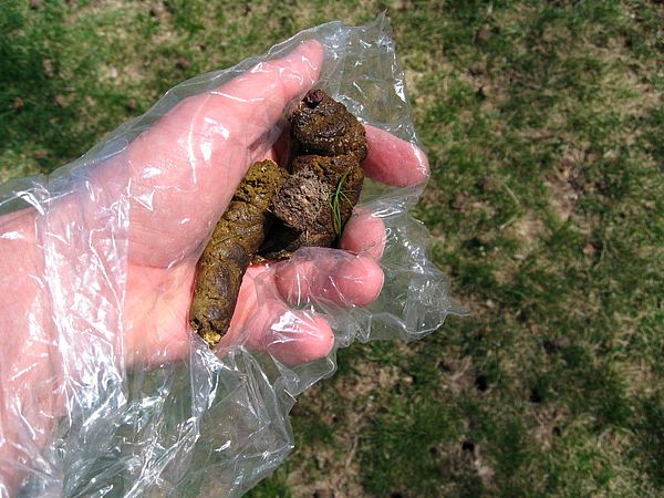 Woof-waste doesn't make good fertilizer; it burns grass and leaves unsightly discoloring. Infected pet poop can carry the eggs of roundworms and other parasites (like cryptosporidium, giardia, and salmonella) which can linger in soil for years. Anyone gardening, playing sports, walking barefoot, or digging in the infected dirt, risks coming into contact with those eggs. Children are most susceptible since they often play in the dirt and put things in their mouths.