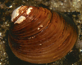 Efforts are underway in Lake George to use benthic mats to exterminate a population of Asian clam. The Asian clam, Corbicula fluminea, is a small bivalve that is native to southern Asia, the eastern Mediterranean, and Australia. They are small, usually less than 1.5 inches in size, and have a light tan or brown shell (color varies) with distinctive concentric ridges. The Lake George population was discovered just last year, and is thought to be small enough that control efforts can lead to complete eradication. The benthic mats used for control are rolled out on the lake bottom and weighted down with steel rebar. The mats are expected to suffocate any Asian clams beneath them within 45-days.