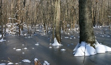 There are countless flooded forests, marshy swales, and peaty bogs throughout the Champlain Basin which help to prevent major floods from occurring downstream and provide important habitat for fish and wildlife. When torrents of spring snow melt come rushing out of the Adirondack or Green Mountains, rivers rage and lake levels rise. Rivers and lakes leave their normally disciplined beds, and spill water throughout the surrounding landscape. Wetlands then play the role of calming mediator. They accept the water and hold it serenely, relinquishing it back to the river over the course of days or weeks.