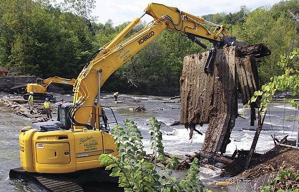 The Willsboro Dam on the Boquet River was removed in August opening over 30 miles of river to spawning by Atlantic salmon. The 125-year old dam, a relic of the area’s milling past, was falling apart. The roughly $250,000 cost of removal was around four times less than the cost of repair or replacement. Planning for the removal took over three years, but ultimately the community backed the project. The Boquet River is reported as the steepest river in New York State dropping nearly 3,000 feet of elevation over 47 miles and draining a watershed of 240 square miles. The original dam was built in the 1890s to create water power for various mill industries along the banks of the river. In 1982 a fish ladder was added to the dam, the first in New York State. As part of the project, half of the site’s fish ladder has been removed and the remaining structure is now a viewing platform. The water level will also drop several feet upriver, leaving a stretch of exposed shoreline. It will likely take a year for the river to scour out new flood patterns. The US Fish and Wildlife Service and the NY Department of Environmental Conservation will guide the Boquet River Association to revegetate the shoreline with native species to avoid the growth of invasive vegetation. Fish and wildlife officials do not expect sea lamprey to move upstream as a result of the dam removal. The old dam had become so leaky, lamprey could have been moving upstream prior to removal, and are instead impeded by the rapids on the river. LCC strongly supports efforts to remove obsolete dams and restore spawning opportunities for native fish.