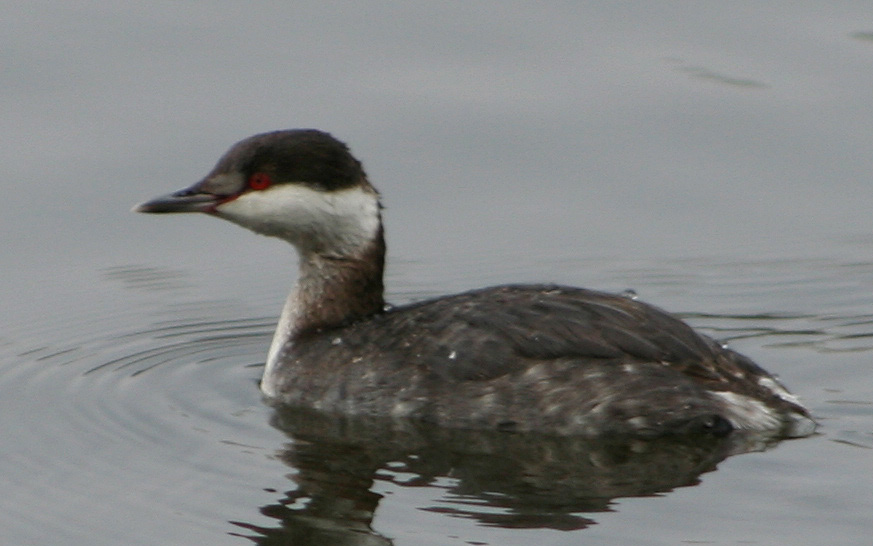 While horned grebes are by far the most common representatives of their family on Lake Champlain during the winter, two other species are found with some regularity. Red-necked grebes, like the horned grebe stop by on their way to the ocean from breeding grounds they share with horned grebes. Pied-billed grebes breed in small numbers around Lake Champlain and occasionally linger into the winter. Red-necked grebes are larger with longer bills and more gray in the cheek and neck compared to horned grebes. The most red-necked grebes ever observed on the Champlain Christmas Bird Counts was 11 in 1999 when six were found in Burlington and five in Ferrisburgh. There are numerous years when none are located.