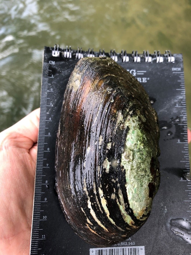 They will burrow deeper within lake and river bottom substrates to stay warm in winter or to avoid being washed away during flood events. If eastern elliptios don’t make this seasonal vertical migration in shallow waters, they risk being frozen solid or frozen into mobile ice cover. Their winter burrowing may allow them to live at a temperature closer to that of the groundwater—a refuge from frigid winter temperatures. The region’s native mussels are jeopardized by the overall degradation of freshwater ecosystems—contributing factors include bank erosion, stormwater runoff, dams, and the invasive zebra mussel, which outcompetes them for food and suffocates them by smothering.