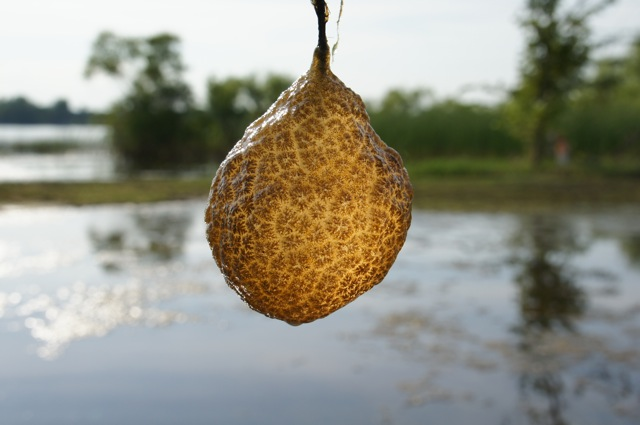 Brown jelly-like blobs have been reported from various places around Lake Champlain this summer. The patterning on the surface of the blobs makes them resemble brains or diseased tree branches. These are actually colonies of sessile invertebrate animals called bryozoans. While the blobs may range from golf ball to melon-sized, each individual in the colony is microscopic. Most bryozoan species live in marine environments, but 50 species are known from freshwater including 21 from North America. The species most commonly observed in Lake Champlain is probably Pectinatella magnifica. Bryozoans tend to grow on wood or other vegetation in areas where the water is quiet. They do not tolerate polluted conditions and require fairly high oxygen levels in the water. Occasional summer outbreaks have been recorded on other waterbodies, but it is unclear why they happen.