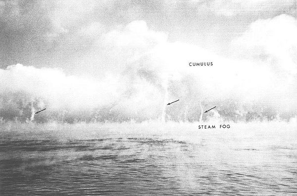 Early winter is the best time to look for steam devils on Lake Champlain. These weak whirlwinds over water develop when cold air moves in over the still relatively warm waters of the lake. First fog develops over the water, then wisps begin to spiral and become taller and tighter. They can reach up to hundreds of feet into the air, like small tornadoes.
