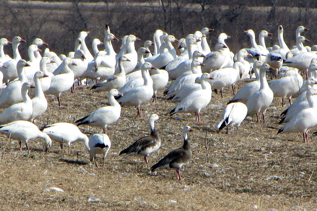 Writer and field biologist Bryan Pfeifer has written an excellent summary of the changes in the snow goose population over time from about the 1980s, when the geese first began to appear in Addison. At that time the Vermont Fish and Wildlife Department encouraged agricultural practices that would entice the birds to land. Their actions coincided with tremendous growth in the snow goose population. In the three decades between 1980 and 2010, the snow goose population in their breeding grounds increased from about 200,000 to upwards of 1-million. The increased population put pressures on the ecology of the breeding grounds where they overtaxed the resources available and the economy of farms in the wintering grounds where they devastated croplands. This led to efforts to control the population by increasing hunting pressure during migration and on the breeding grounds. As a result the population has since stabilized at about 800,000. Now the geese find food available throughout the Champlain Valley as corn production has increased.