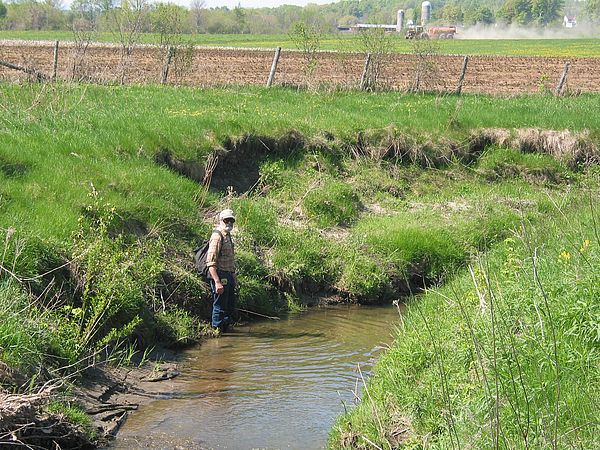 LCC along with the Vermont Agency of Natural Resources (ANR) has recently completed our third year of monitoring at a stream restoration site on Rugg Brook in St. Albans. Rugg Brook is an impaired waterway that flows into St. Albans Bay. An LCC assessment of the stream in 2005 revealed a section with steep eroding stream banks. ANR then partnered with landowners Andy and Nicole LaPierre, the town of St. Albans and LCC to flatten the banks and allow flood waters to dissipate over the surrounding lands rather than continuing to erode them and carry sediment to St. Albans Bay. LCC has remained active in assessing the success of the project.