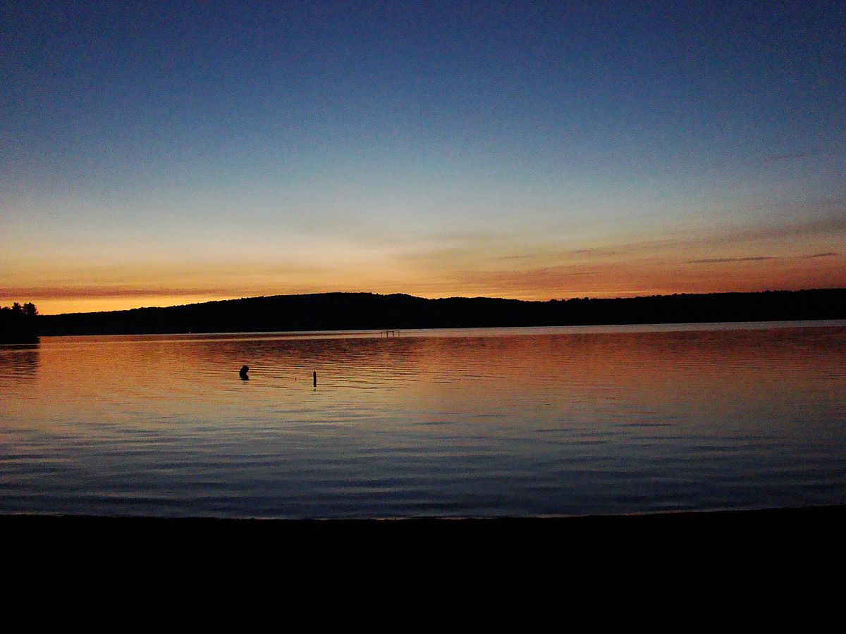 Another factor making Lake Champlain sunrises and sunsets so impressive is the juxtaposition of mountains and lake. The lake provides a reflection of the brilliant colors of the sky. The mountains offer various shades of blue as a further complement. Mountains appear blue because they are in the distance so they are illuminated by Rayleigh scattered light. If you are able to observe multiple ranges at the same time, the ones furthest away should appear bluest.