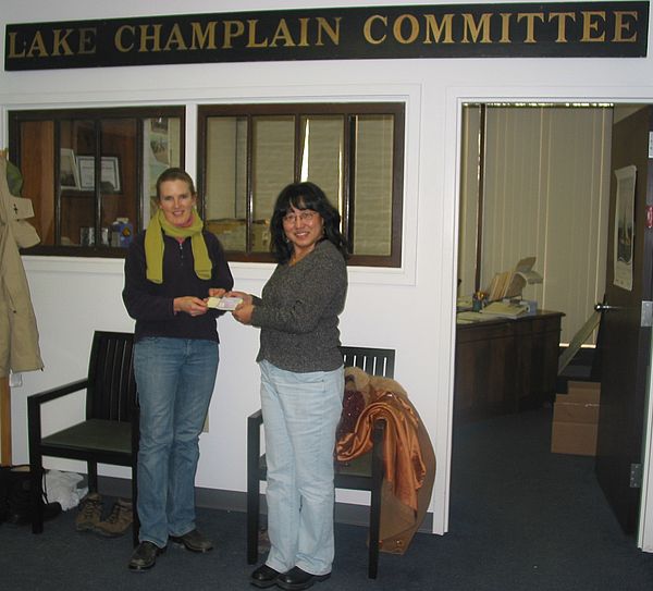 At a time when budgets are tightening throughout the country, University of Vermont students are generating revenue for local causes while getting a trial run at becoming an entrepreneur. Through the “Dollar Enterprise” program, part of an economics class taught by Dr. Kathleen Liang, students are each given $1 in seed money and work in teams to form a micro business. The proceeds go to non-profits chosen by the students. Last month, Dr. Liang delivered an $800 check to LCC on behalf of her students. "We are thrilled to receive this student support for our work to protect Lake Champlain's health and accessibility" said Lori Fisher, Lake Champlain Committee executive director. "UVM's Dollar Enterprise program helps students hone their entrepreneurial skills while strengthening their community."