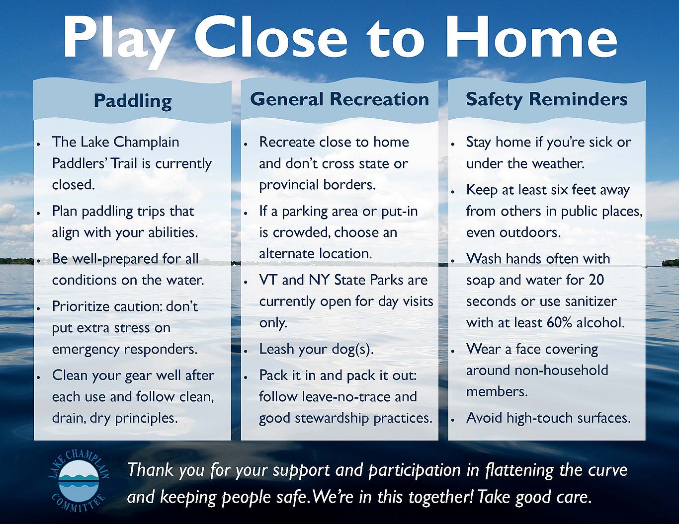 Spring is a great time to recreate—blue skies, vegetation glowing green, woodland flowers bursting forth, birds in flight and song—all call us to get outside! With the recent easing of COVID-19 related restrictions on travel, we are all anxious to go further afield to exercise our bodies and lift our spirits outdoors. Please take precautions, Play Close to Home and remember that water is still deadly cold. Thank you for following these tips to help flatten the curve and keep people safe. We're in this together! Be well, everyone.